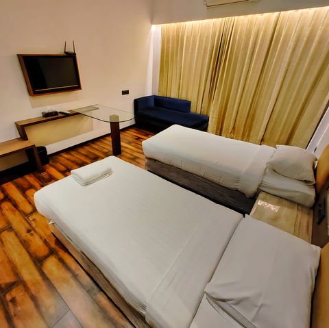 Premium Amenities: We leave no stone unturned in ensuring your comfort. Our luxury rooms are equipped with modern amenities, including high-speed Wi-Fi, Flat-screen TVs, and well-stocked Mini Fridge, Tea Coffee kettles, Safe Lockers for your Comfortable seamless convenient stay.